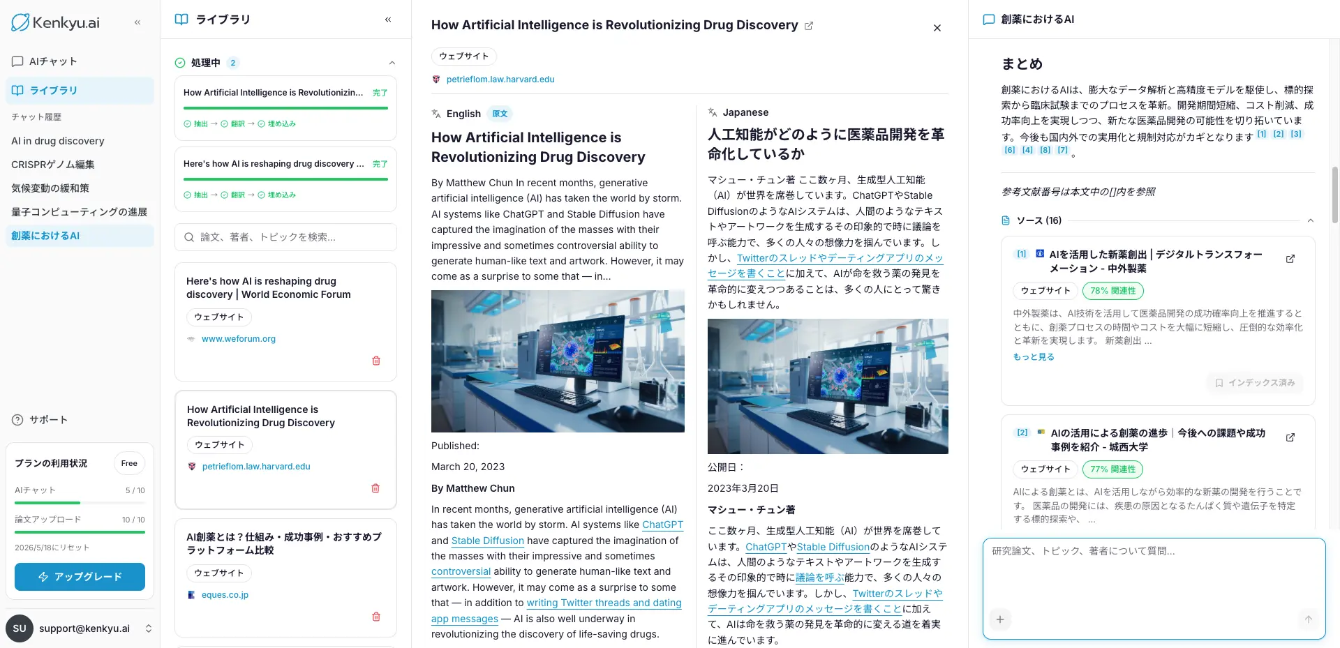 Kenkyu.aiのコンソールは英語または日本語で表示でき、あらゆる主要言語の研究論文を翻訳します。